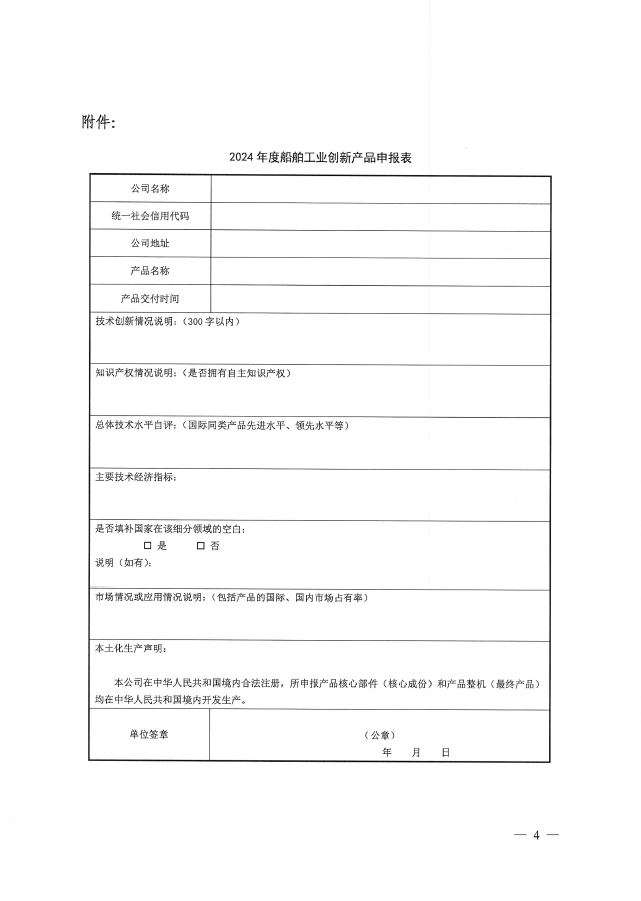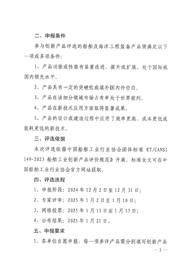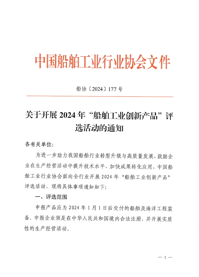 关于开展2024年“船舶工业创新产品”评选活动的通知
