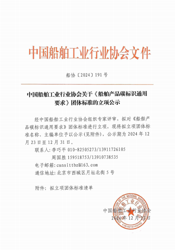中国船舶工业行业协会关于《船舶产品碳标识通用要求》团体标准的立项公示
