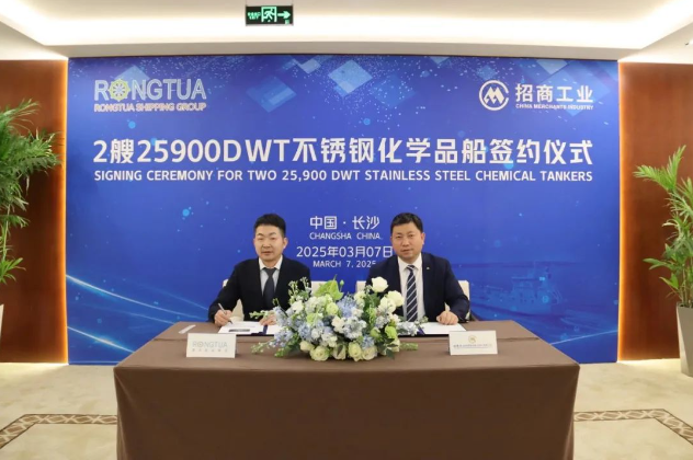 3月7日,招商局金陵鼎衡船舶(扬州)有限公司与蓉达航运集团在长沙签署了2艘25900吨不锈钢化学品船的建造合同。