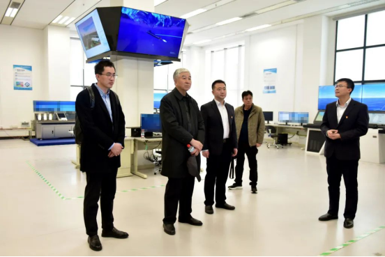 在中国船舶集团有限公司天津航海仪器研究所,郭大成一行参观了展示中心、重点实验室,详细了解研究所的历史沿革、科技创新、产业发展以及重点科研项目等情况。天津航海仪器研究所党委书记肖乾热情接待并参加座谈。