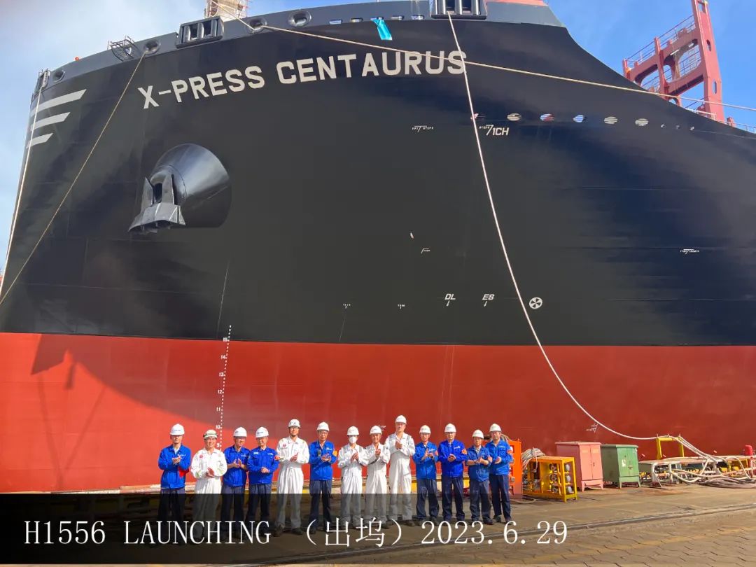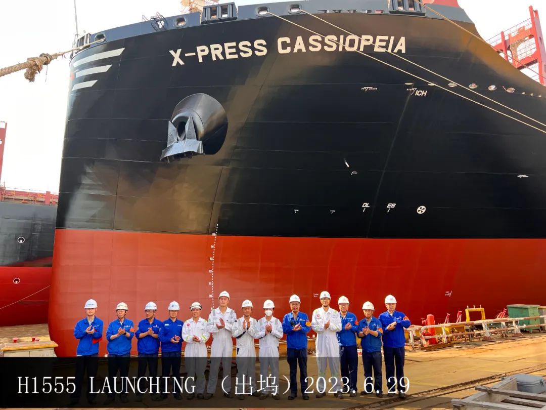公司7000TEU集装箱船H1555&1556同日出坞 ​