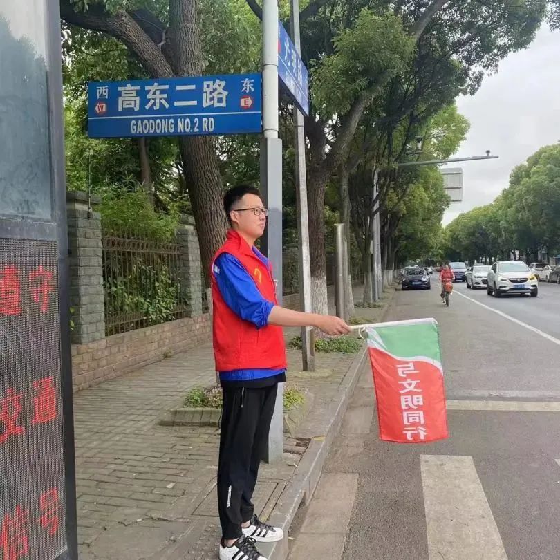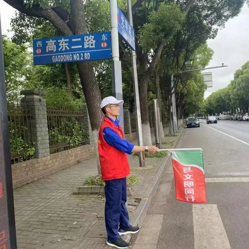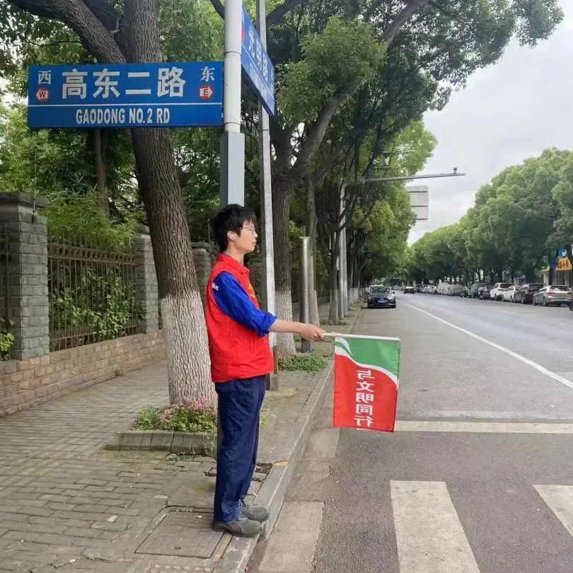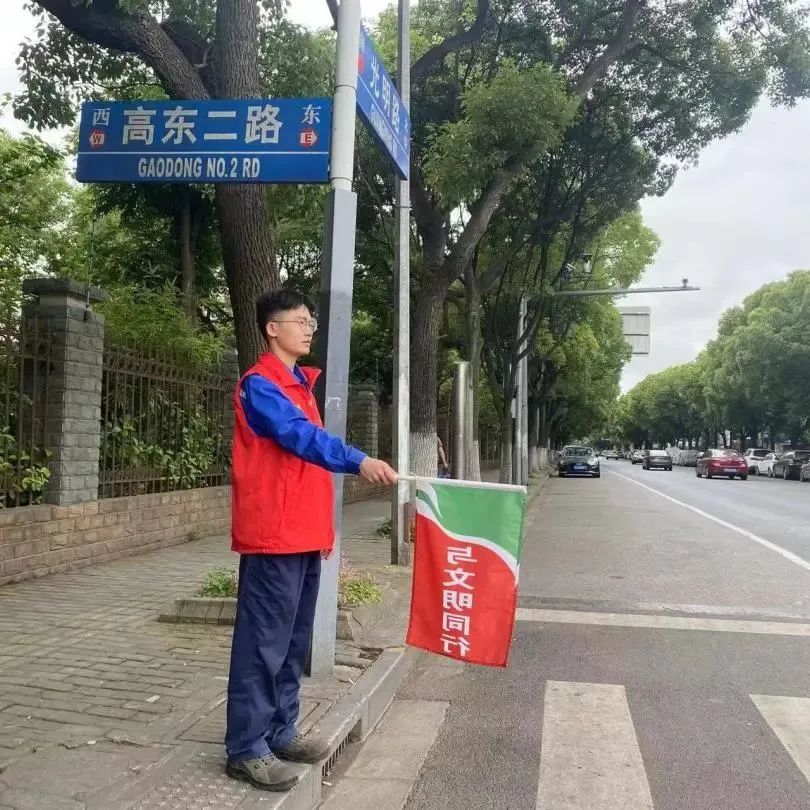 四名志愿者赴光明路—高东二路路口