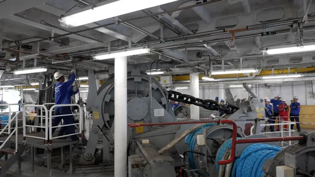 本次试航有1217人参与,包括船东、船检、合作单位和开云体育APP下载 相关部门的工作人员。为了做好各项保障,试航在海试工作组的统一领导下,由海上指挥中心和岸基保障中心共同配合,以“8+2+2”的小组协作模式推进。海上的航行驾驶、技术支持、检验、调试等八个航行试验小组,后勤和酒店两个生活保障小组与岸上的应急、技术保障两组协同合作,有力保障了试航任务圆满完成。