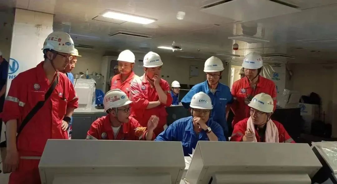 本次先为大家带来《奋进中的邮轮调试团队》。此次试航任务艰巨。在试航出征前,调试团队就陆续开展了相关调试准备。在试航刚开始的第一天,动力推进系统调试人员就开始对邮轮进行检查调试,为后面的测速试验打好基础。试航期间,经过全体调试团队的卓越拼搏,H1508船相继完成了航行系统、推进系统、电站管理系统、艏侧推、减摇鳍等涉及船舶性能的关键系统与设备的一系列试验,充分发扬了“勇于吃苦,敢于战斗,善于攻关,甘于奉献”的邮轮精神。