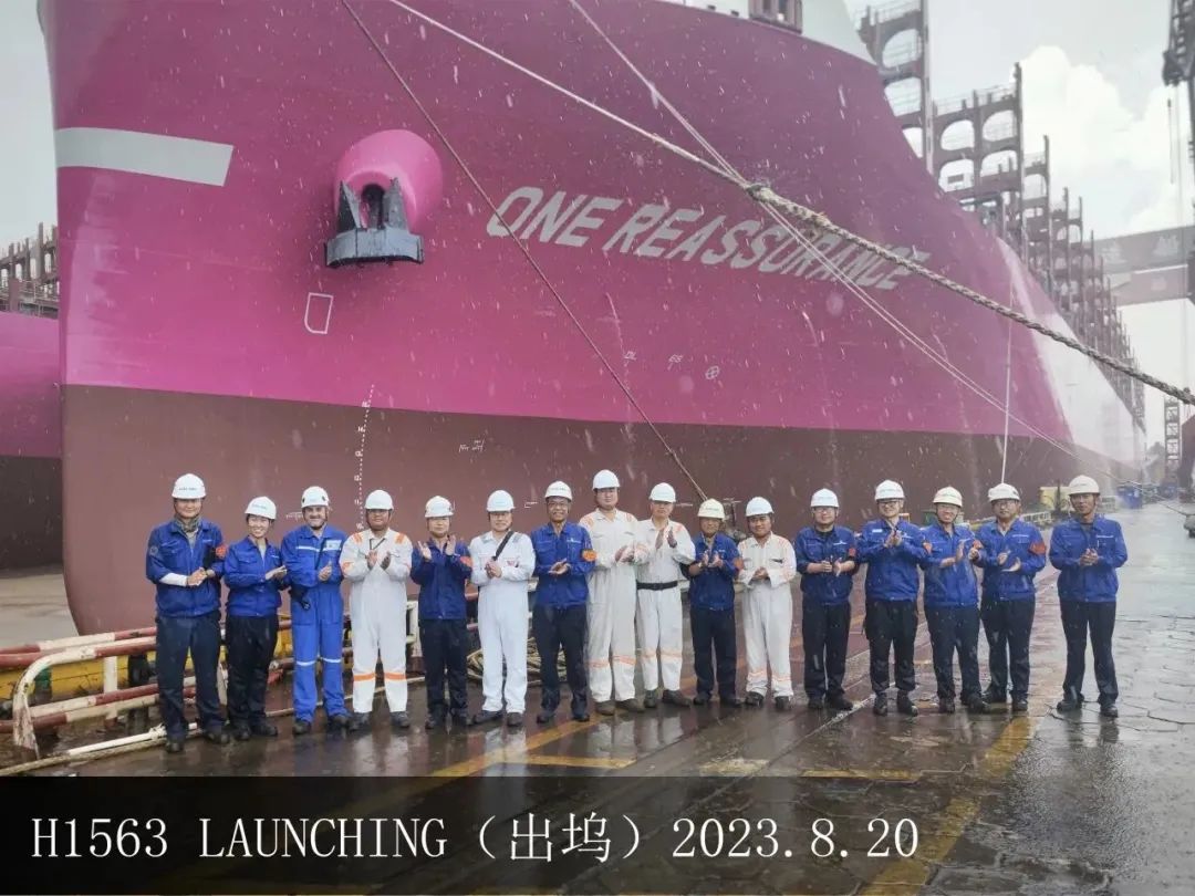 值得一提的是,在50天的船坞建造阶段,曾先后经受了梅雨、高温、台风等多重不利因素影响和考验,各项目组和生产部门相互支撑和互相协调,以“管理”之力,打赢“自然”之战,圆满实现了三型四船同坞节拍化生产,且各型船出坞及起浮均达到了完整性状态。