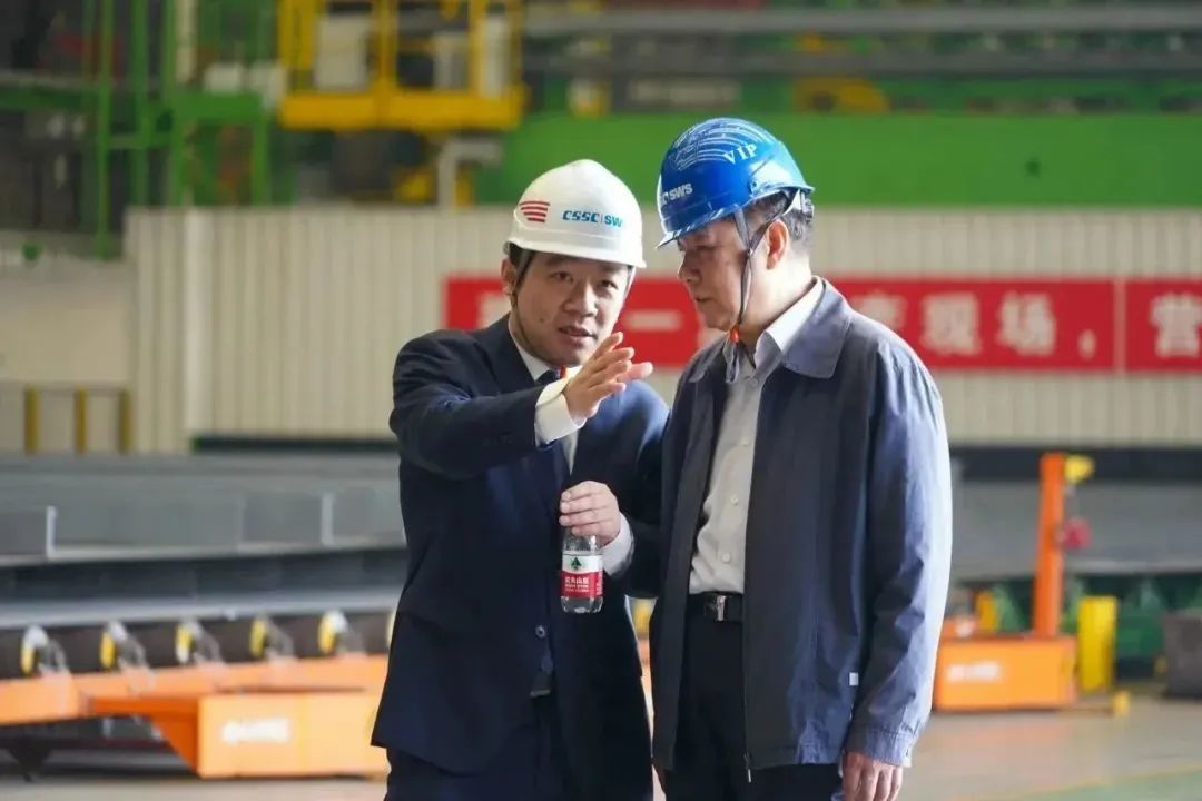 升旗仪式结束后,公司历任老领导在王琦、陈刚和经理班子成员陪同下,现场参观了薄板中心、集配中心、国产首艘大型邮轮以及公司展厅。在随后的座谈会上,老领导纷纷对公司取得的佳绩表示肯定,并对公司进一步高质量转型发展提出宝贵的意见建议。