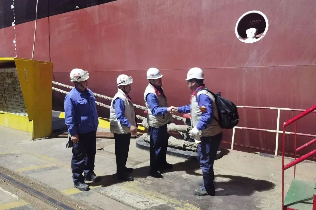 12月5日,公司为希腊ENESEL S.A.公司建造的11.4万吨阿芙拉型成品油轮H1514船顺利完成试航任务,靠泊公司2号码头。相关部门负责人到场迎接试航团队凯旋。