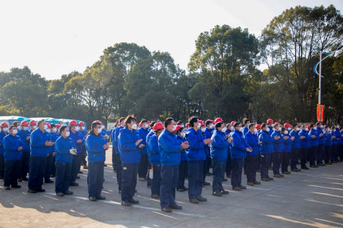 1月3日,公司举行2023年迎新年升国旗仪式。公司党委书记、董事长王琦主持仪式并致辞。公司领导班子、总助总监及各部门职工代表200余人参加。